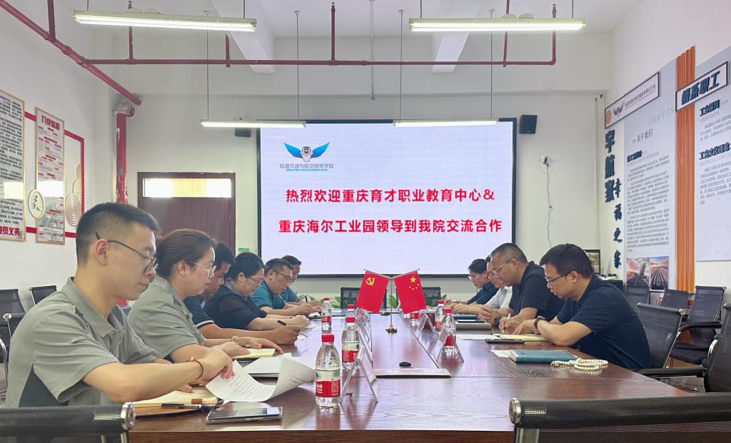 为进一步推进中高职衔接、加强“中高职一体化”贯通培养,深化产教融合建设,全面提升人才培养专业化、标准化水平,日前,重庆市育才职业教育中心党委副书记张桂芳、副校长曾松,重庆海尔工业园招聘总监蒲志春一行领导来到学校轨道交通与航空服务学院共同探讨“中高职一体化”培养及产教融合建设相关事宜。轨道交通与航空服务学院党总支书记、院长钟富平及相关责任人参加会议。