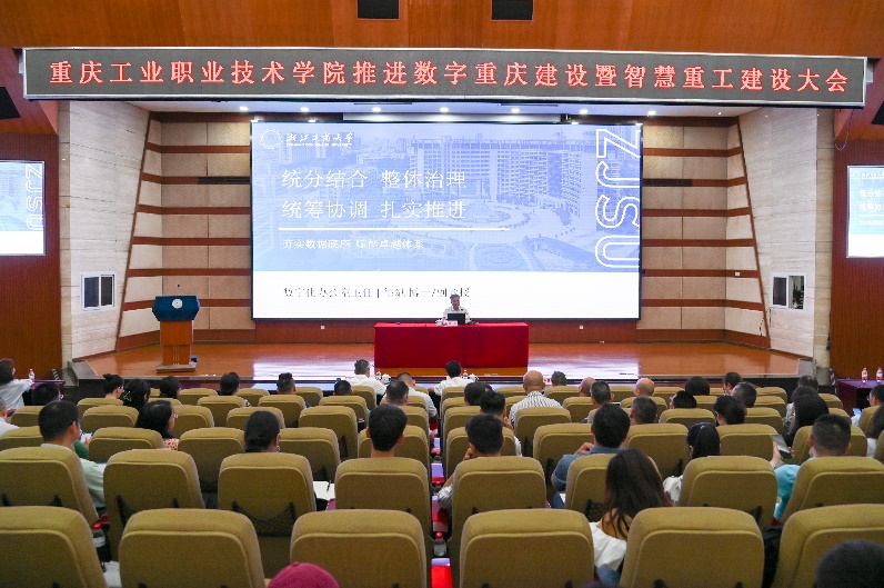 为深入贯彻党的二十大精神,认真落实党中央、国务院关于数字中国建设的重大决策部署和中共重庆市委办公厅、重庆市人民政府办公厅《关于成立数字重庆建设领导小组的通知》精神,结合学校打造“智慧重工”品牌的要求,进一步落实和健全智慧重工建设整体工作推进机制,7月8日至9月,学校召开了主题为“数字化为教学赋能、智能化为教育添彩”的推进数字重庆建设暨智慧重工建设大会,学校全体在家校领导,科级及以上干部,各单位负责智慧重工建设的工作人员代表,网络与信息技术中心全体工作人员等共计450余人参加会议,会议印发了《智慧重工建设总体方案》《智慧重工建设数据资源管理办法征求意见稿》。大会由学校党委委员、副院长赵柏森主持。