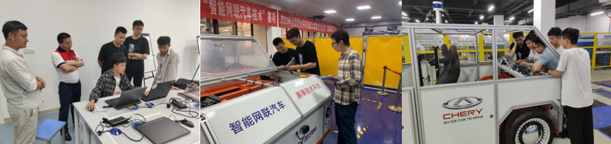 在技能交流环节,举办联盟成员在校学生同台竞技,分别在仿真环境中设计并搭建仿真道路地图、仿真测试场景,进行整车参数配置与调整和智能网联汽车整车仿真测试;对智能网联汽车整车及系统(部件)进行性能检测、安装调试与标定,线控底盘CAN通讯数据读取和解析,对执行机构相关参数进行调试、设定与读取;整车能源供给、智能传感器、总线、线束和通信等系统的故障诊断与排除。