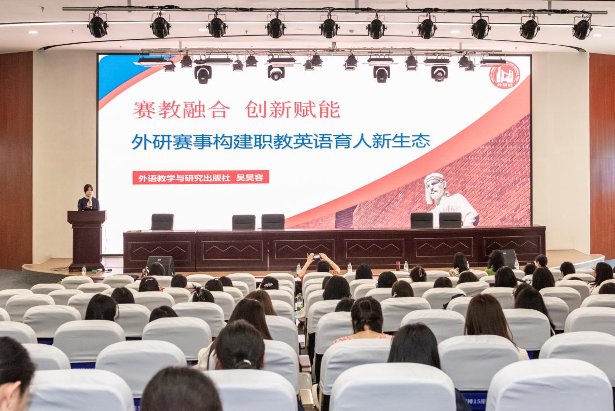 中国教育电视台“外研社杯”职场英语挑战赛组委会吴昊容老师作题为“‘赛教融合、创新赋能’构建职教英语育人新生态”经验分享