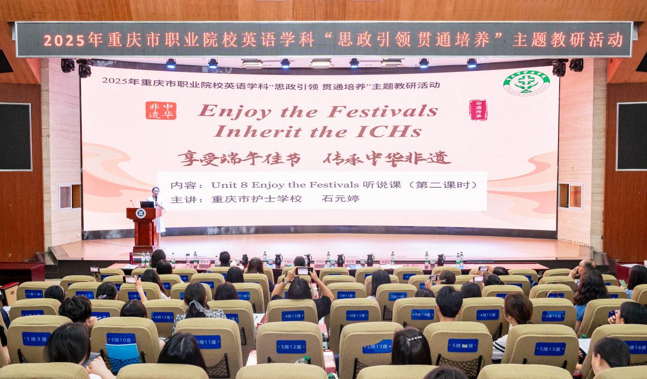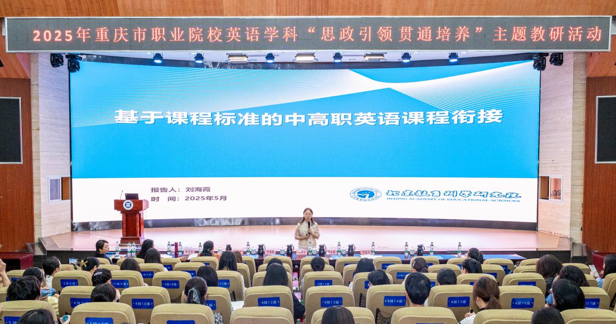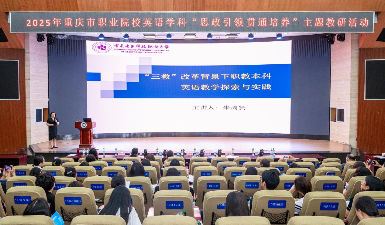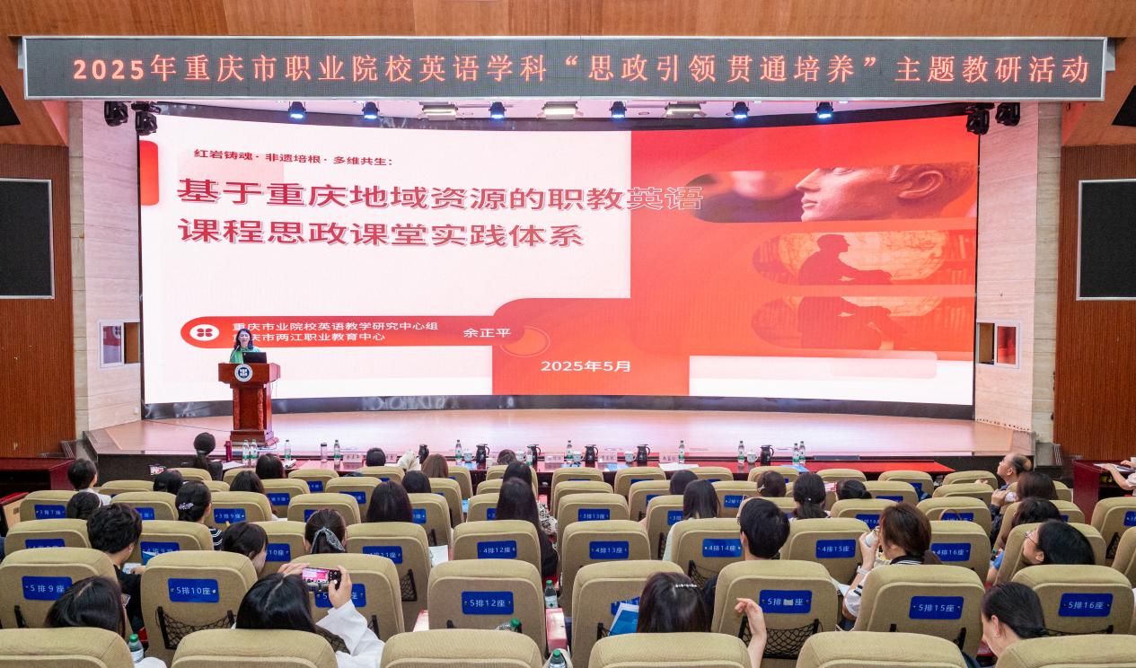 为深入贯彻落实全国、全市教育大会精神,探索课程思政在一线英语课堂教学中落地举措,推动职业教育英语教学高质量发展,5月21日,重庆市职业院校英语学科“思政引领,贯通培养”主题教研活动在学校举行。此次活动由重庆市教育科学研究院主办,来自全市中高职院校及区县教研机构近200名英语教师及教研人员参加活动。市教育科学研究院教研员傅渝稀主持活动。