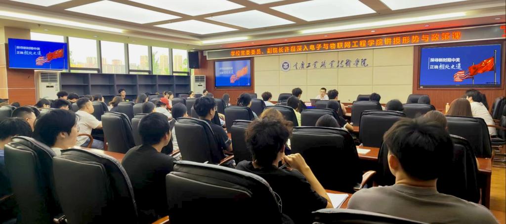 6月18日,学校党委委员、副院长许磊走进电子与物联网工程学院作题为“探寻新时期中美正确相处之道”形势与政策课,帮助师生深入理解中美关系,把握时代脉搏。
