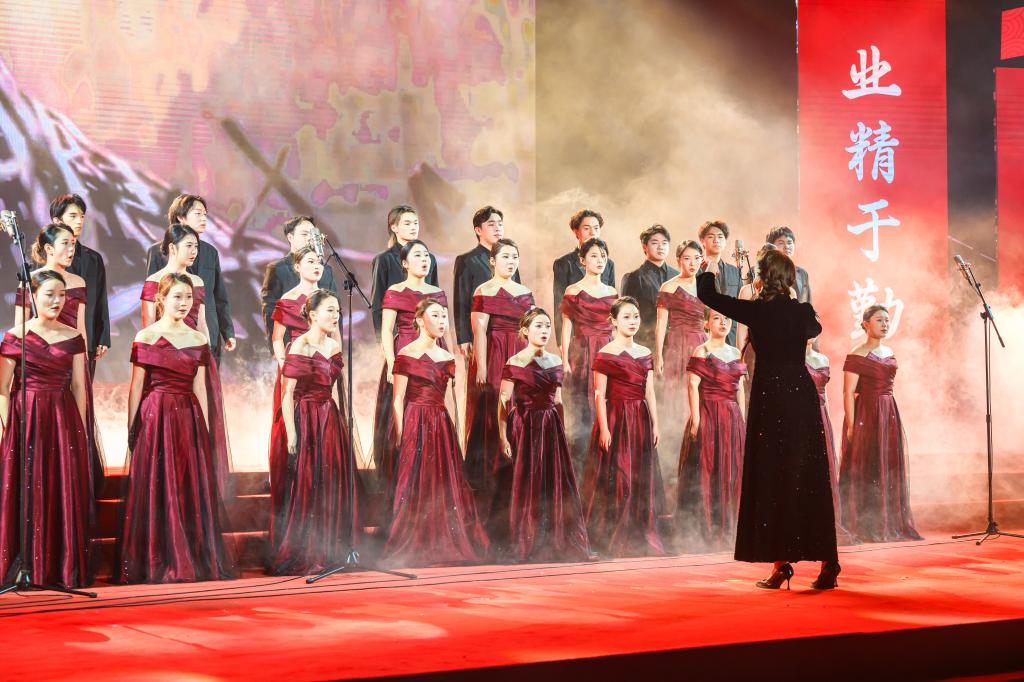 “扬·重工之光”篇章聚焦红岩精神与职教匠心的融合。原创朗诵《清风颂》以诗为载体,传递“清如秋菊、廉似梅花”的信念,将清廉教育与红岩精神相融合,为青年学子扣好“廉洁扣子”。情景互动演绎 + 访谈《顶天立地重工人》,聚焦学校在技术攻坚的战场上,始终以“顶天立地”之姿勇毅前行,深刻诠释了红岩精神赋能下的职教力量。合唱《领航》恢弘唱响,展现重工人在双高计划建设、南川校区建设、职教本科建设等重点工作中,以红岩精神为指引,奋进新征程的决心 。