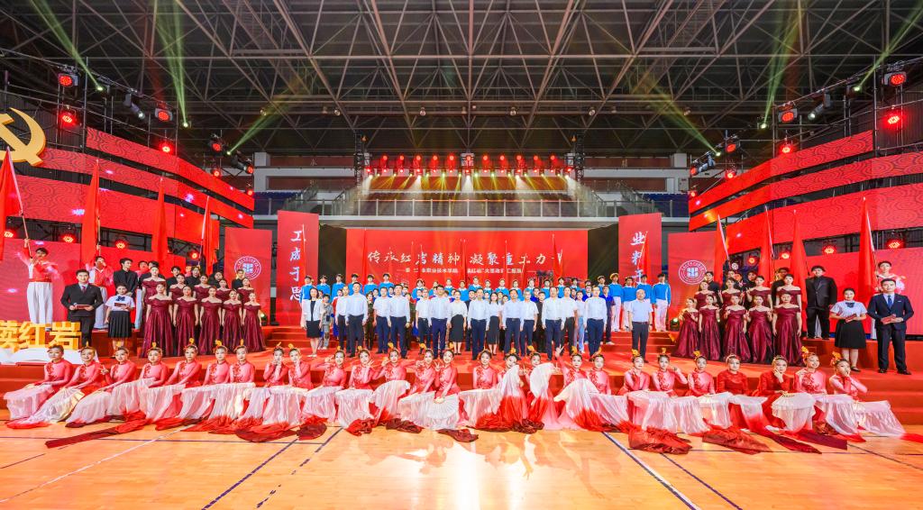 为贯彻落实中央八项规定精神,推动学习教育走深走实,涵养良好政治生态,传承红色基因,弘扬红岩精神,增强当代青年学子理想信念与家国情怀,6月23日晚,一场意义非凡的“传承红岩精神,凝聚重工力量”——“再读红岩”大思政课展演活动在学校体育馆拉开帷幕。学校党委书记郭天平,党委副书记、院长周传德及全体在家校领导、党委委员和师生代表参加活动。