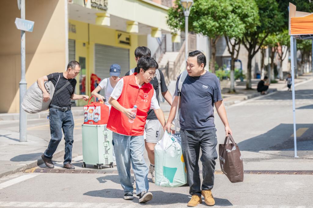 迎新志愿者以良好的精神风貌和饱满的工作热情,向新生指引路线、搬运行李......