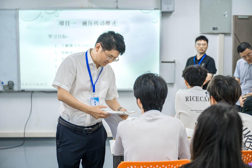 检查中,校领导一行重点查看课堂教学组织、教师备课情况、学生出勤状态及教学设备运行情况。从检查结果看,全校教学秩序井然,各教学单位准备充分;任课教师均提前到岗,教案设计详实,教学热情饱满;学生出勤率高,课堂互动积极,精神面貌昂扬。校领导“推门听课”随机走进课堂,全程观察教学过程,重点关注教师教学方法创新、学生主体作用发挥及课堂育人实效。课后,校领导与师生亲切交流,并提出建议,进一步优化教学节奏、强化实践环节,叮嘱同学们珍惜课堂时光,把课堂所学与职业规划紧密结合。