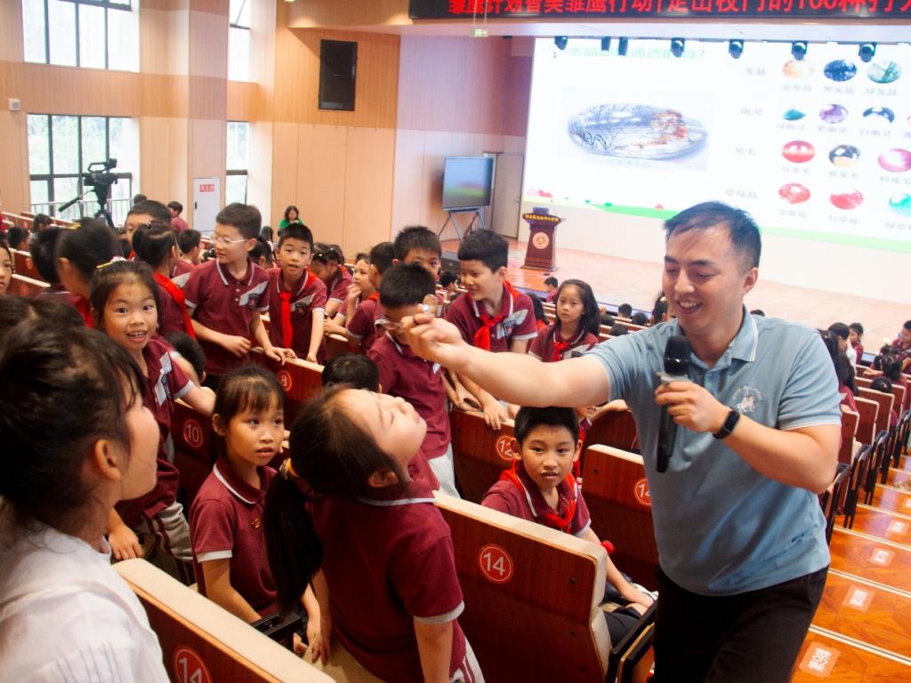 9月25日下午,在渝北区数据谷小学,550余名师生参与了《凝固的时光——琥珀鉴赏》讲座。学校黄坚博士通过大量图片、视频和实物标本,向学生们讲解了琥珀的成因、特征及鉴别技巧,培养了他们的地质思维和探索精神。在《出发!去文创中寻宝》讲座中,魏颖副教授通过生动的比喻,将传统文化与现代文创相结合,激发了孩子们对文化遗产的兴趣。