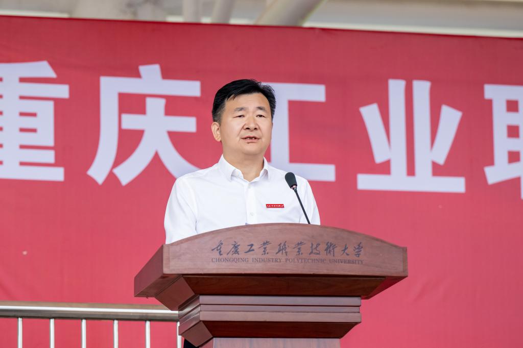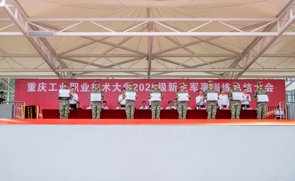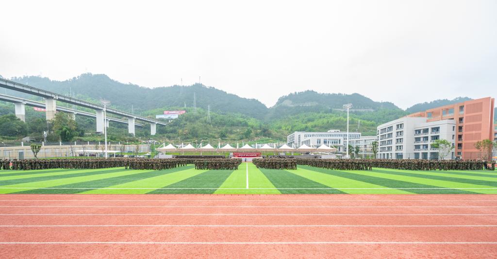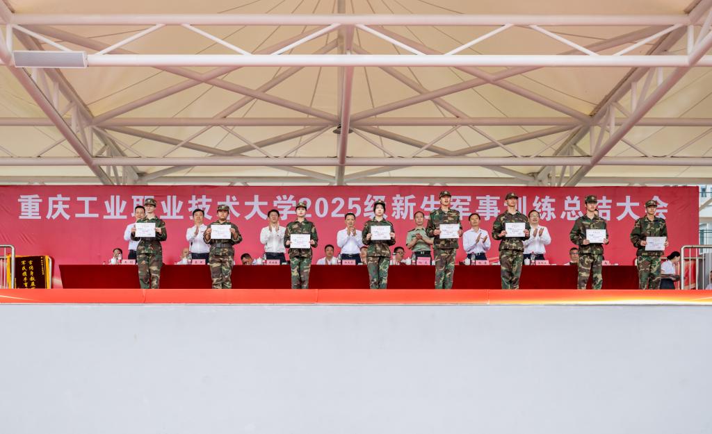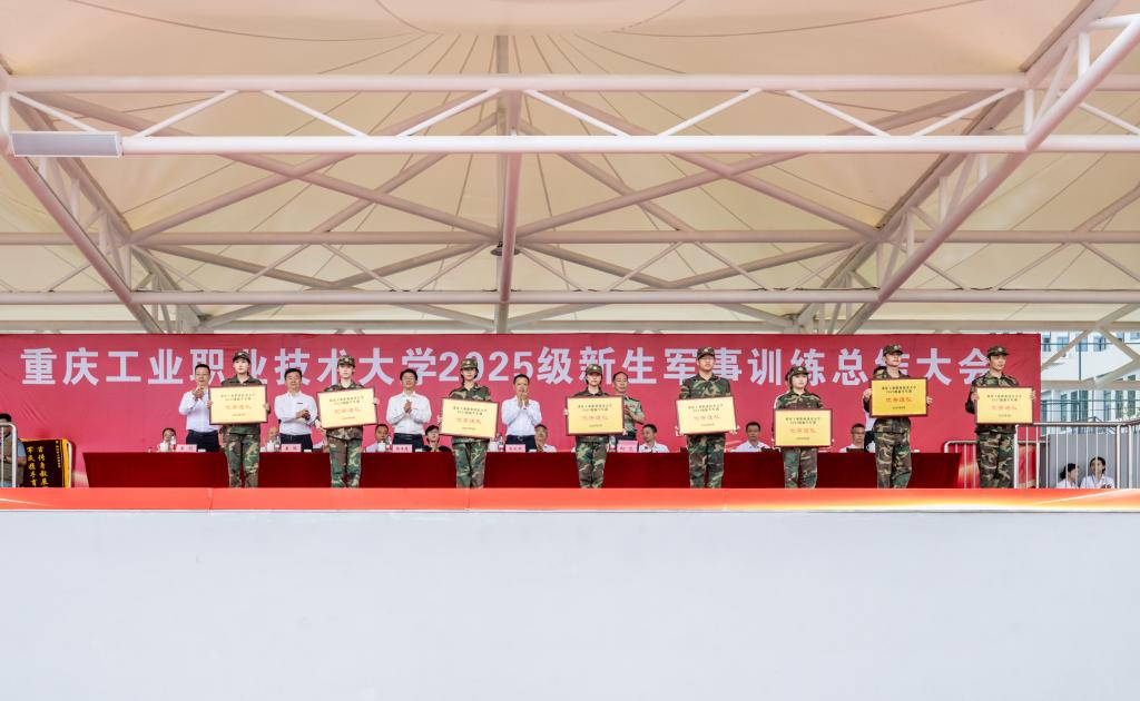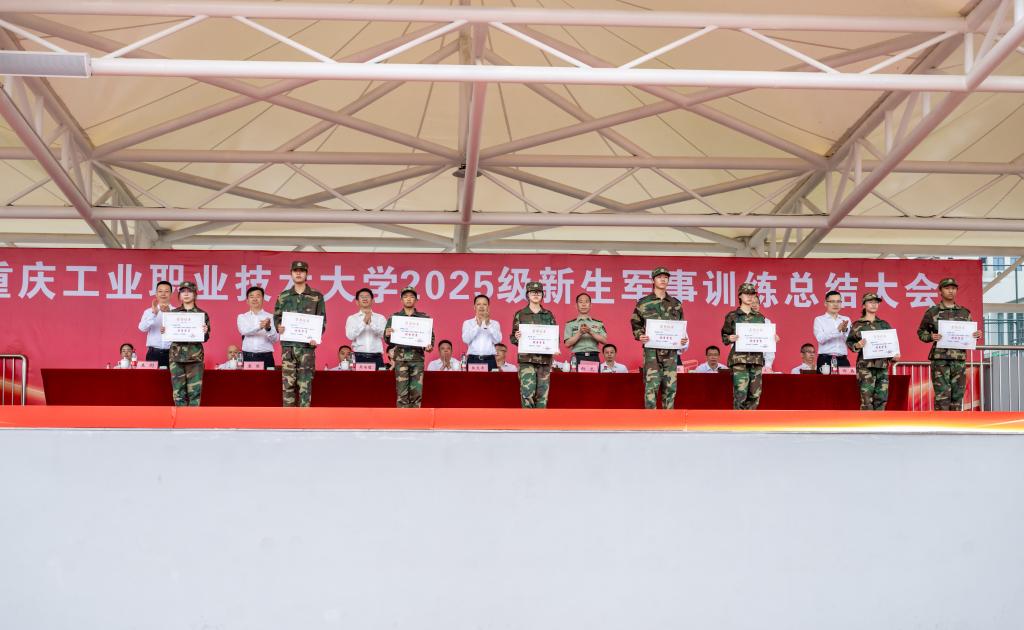 9月30日,重庆工业职业技术大学2025级新生军训总结大会在南川校区田径运动场举行。南川区人民武装部政委向文大校出席大会,与学校党委书记郭天平,党委副书记、校长周传德及全体在家校领导一同检阅新生军训成果,见证新生们历经军训淬炼洗礼所展现昂扬向上的精神风貌与扎实过硬的训练成效。学校职能部门负责人,各二级学院党总支书记、院长,承训单位全体教官、新生辅导员及2025级全体新生参加大会。大会由学校党委常委、副校长袁国主持。