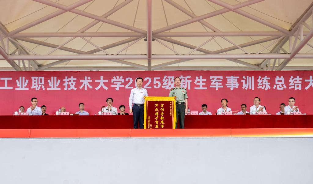 郭天平讲到,在国家烈士纪念日之际,学校举行2025级新生军训总结大会,以庄重的仪式,表达对烈士的崇高敬意。在15天的军训中,4300余名新同学圆满完成了各项任务,展现了大学生的朝气蓬勃和锐意进取的精神。希望新同学们们在军训中获得敬畏之心、团结协作、顽强毅力和必胜信心,把积极向上的精神风貌带到今后的学习中去,努力成长为高技术技能人才,铸就精彩人生。
