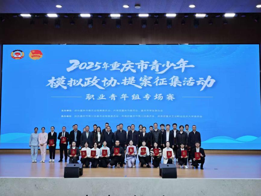 11月4日,2025年重庆市青少年模拟政协提案征集活动职业青年组专场赛在学校南川校区举行,比赛由共青团重庆市委、政协重庆市委员会提案委员会、重庆市学生联合会联合开展,共青团重庆市南川区委、政协重庆市南川区委员会提案委员会与校团委共同承办。比赛以“深学笃行新思想,青春献策新时代”为核心,引导职业青年感悟全过程人民民主内涵,展现校地协同育人成效。重庆市政协提案委副主任梁震,共青团重庆市委副书记黄宗华,南川区委副书记张立平,南川区政协副主席杜武,学校党委常委、副校长、南川校区党工委书记、管委会主任袁国,市、区及学校相关部门负责人,来自全市26组参赛队和师生代表共计500余人参加活动。