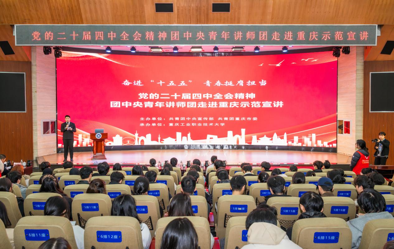11月20日上午,由共青团中央宣传部、共青团重庆市委主办,我校承办的“奋进‘十五五’青春挺膺担当”党的二十届四中全会精神团中央青年讲师团走进重庆示范宣讲活动顺利举行。团市委副书记杨春渝、团中央宣传部宣传教育处处长张长宏以及我校副校长秦传江参加活动,学校430余名师生代表聆听宣讲。