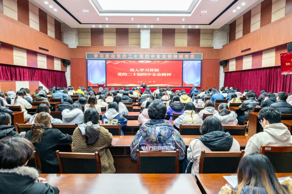 为贯彻落实学校党委关于学习贯彻党的二十届四中全会精神的统一部署,进一步引导广大师生党员准确把握全会核心要义,12月24日下午,党委副书记张荣在第二学术报告厅作全会精神宣讲。党委组织部、党委宣传部、党委保卫部,工会、离退休工作处以及设计学院、化学与制药工程学院师生代表共计百余人聆听宣讲。