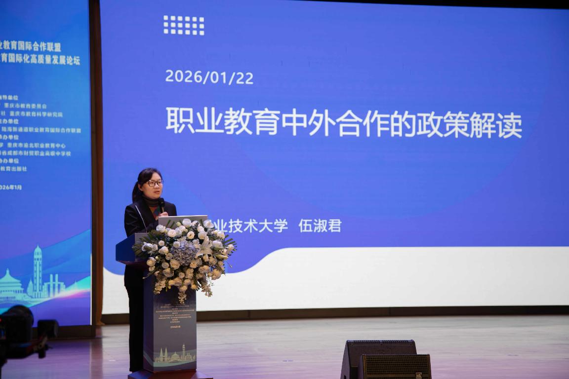 伍淑君作题为《职业教育中外合作的政策解读》的主旨报告