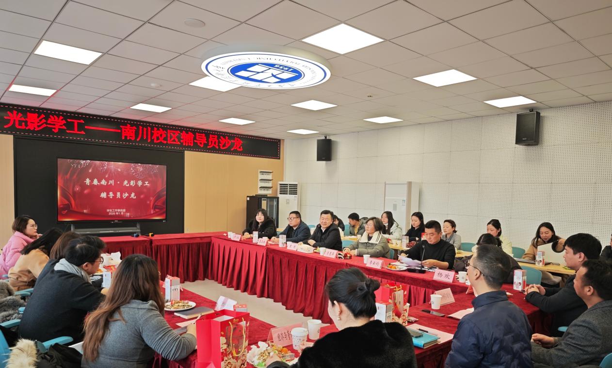 为全面总结南川校区2025-2026学年第一学期学生工作的实践经验与育人成效,进一步凝聚协同育人合力,1月22日上午,南川校区管委会学生工作事务部举办了“青春南川 光影学工”辅导员沙龙活动。学校党委常委、副校长、南川校区党工委书记、管委会主任袁国,南川校区管委会各部负责人、二级学院综合管理办公室主任、全体辅导员、学生社区管理员以及物业代表参加活动。
