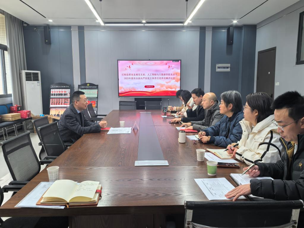 学校党委常委、纪委书记、监察专员王剑深入人工智能与大数据学院党总支召开2025年述责述廉评议会议。王剑充分肯定学院领导班子在政治引领、基层党建、事业发展等方面取得的工作成效。他要求,学院党总支要持续深化理论武装,推动党建工作与教学科研、人才培养等业务深度融合,不断提升基层党组织凝聚力、战斗力,纵深推进全面从严治党和党风廉政建设,为学校高质量发展提供坚强纪律保障。