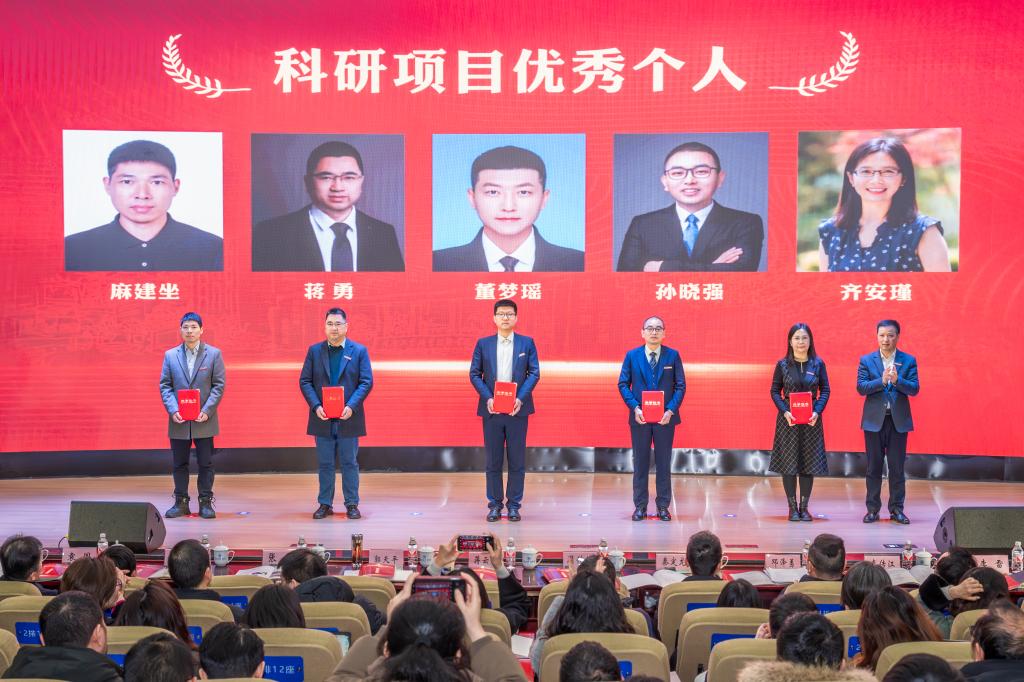 随后,表彰代表依次上台发言。先进集体代表王璐烽、科研工作优秀个人代表杨洋、科研项目优秀个人代表蒋勇、管理工作优秀个人李乐分别分享了他们在科研和社会服务工作中的经验和心得。他们的发言充分体现了学校教职工不畏艰难、勇于创新的精神风貌,激励着更多的师生投身到科研和社会服务工作中去。