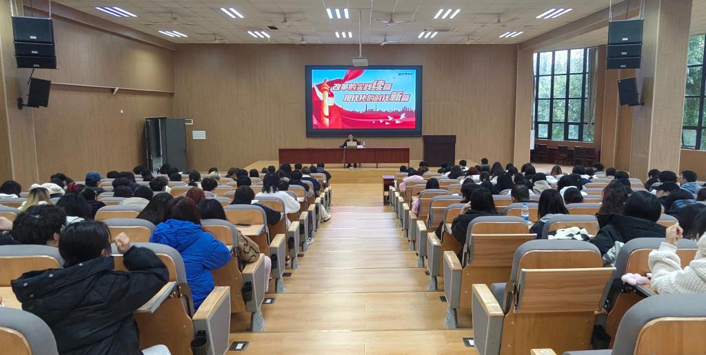 学校党委副书记张荣以《改革的实践续篇 现代化的时代新篇》为题向化学与制药工程学院师生讲授了时长2小时的形势与政策课。他以翔实的数据和生动的案例,系统梳理了党的十八大以来我国在全面深化改革进程中取得的显著成就,阐述了改革为国家带来的全方位变化,强调了改革开放对于国家发展的重要性,并结合当前国际国内形势,分析了改革面临的挑战与机遇。他鼓励广大青年学子积极投身改革实践,让青春在进一步全面深化改革、推进中国式现代化挺膺担当中谱写更加绚丽的青春篇章。