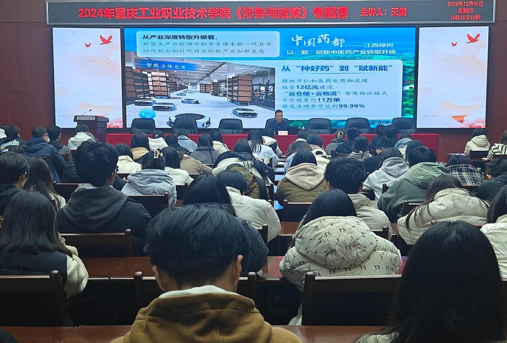 学校党委书记郭天平以《加快发展新质生产力》为题向党政办公室、党委学生工作部、校团委及马克思主义学院师生讲授了时长4小时的形势与政策课,深入探讨了职业教育如何在加快发展新质生产力中挑重担做贡献,以及学子们应如何适应并引领时代变革。他指出,随着制造业高端化、智能化、绿色化步伐的加快,以及新一代信息技术、高端装备、新能源等战略性新兴产业的蓬勃发展,对高技能人才的需求日益迫切。学校将加快构建与发展新质生产力和产业发展相适应的高素质劳动者和高技术技能人才培养体系,通过打造“五金”工程,主动对接产业需求调整专业,优化人才培养方案,提升人才培养质量。