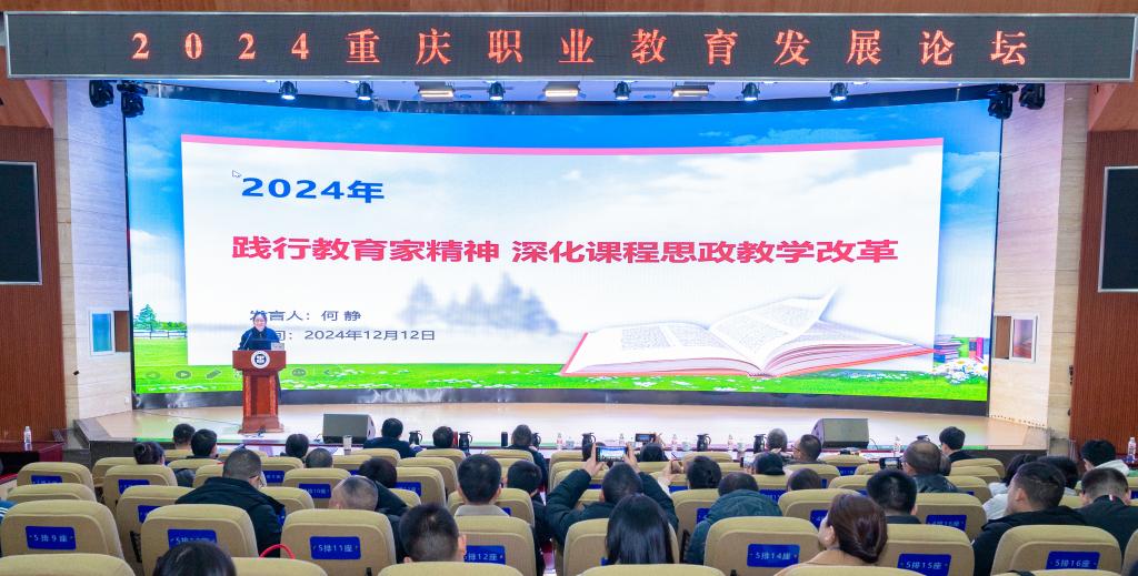 南京大学教育研究院教授、江苏教育名师发展研究中心主任季春梅作《教育家精神与新时代教师使命》主旨报告。重庆工业职业技术学院人工智能与大数据学院副院长何静、重庆市渝北职业教育中心党委书记张扬群、重庆电子科技职业大学电子与互联网学院院长陈良、万州区教委副主任王远成、重庆市荣昌职教中心党委书记曹礼静、重庆城市职业学院副校长陈志军、重庆市九龙坡职业教育中心全国优秀教师罗慧、市教科院职成教所理论研究中心负责人彭茂辉等8名专家先后作专题报告。