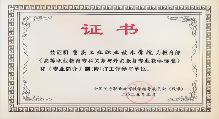 学校获评教育部《高等职业教育专科关务与外贸服务专业教学标准》和《专业简介》制(修)订工作参与单位