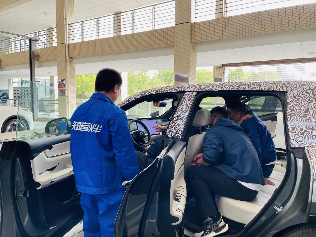 培训现场,参训学员对启源Q07车型的动力系统展开动手操作学习,金钟罩3C电池2.0以热管理、高压安全等6个教学单元进行拆分,培训教师对每个教学单元的问题排查与维护进行讲解。其中,智能化模块是培训重点,在深蓝S09车型的华为乾崑ADS 3.3智驾系统调试区,学员通过激光雷达点云数据标定、毫米波雷达角度校准来掌握自动泊车功能参数配置。在启源Q07车型的智能座舱实训中,学员结合鸿蒙系统协议排查AR-HUD与中控屏交互故障,打破了传统电器电路维修模式。