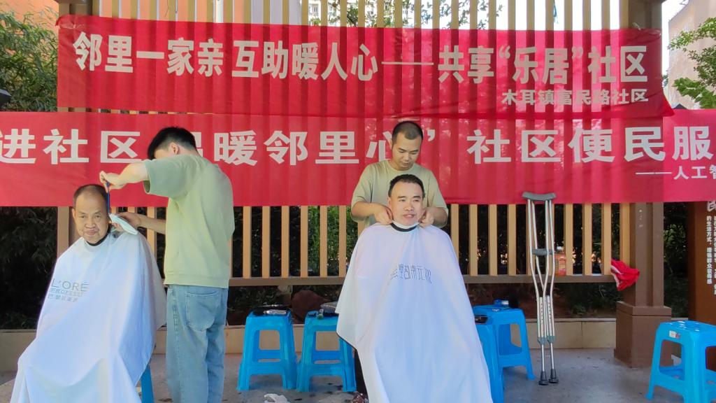 在“义剪进社区,温暖邻里心”便民服务活动中,实践团邀请了2名理发师进行义务剪发,对部分行动不便的老年人提供上门服务。