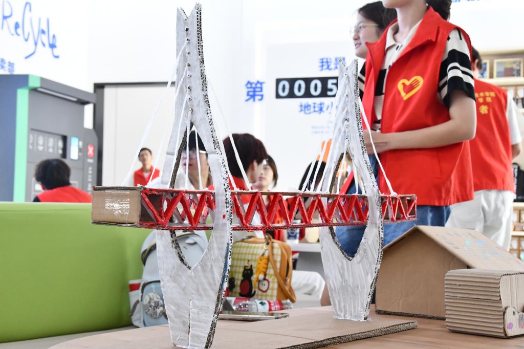 倡导团以“旧物不丢弃,创意添新意”为主题,在江北区绿色驿站开展可回收物DIY活动。同学们收集废旧材料,发挥专业优势,精心制作重庆地标建筑模型,优秀作品成为社区环保宣传亮点,以创意实践传递绿色理念。