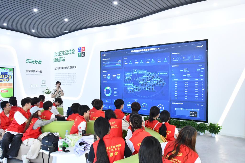 倡导团走进江北区生活垃圾绿色驿站,在老师指导下系统学习了垃圾分类流程,掌握了垃圾分类操作方法,同学们还参观了资源回收区,见证了废旧物品“变废为宝”的过程。