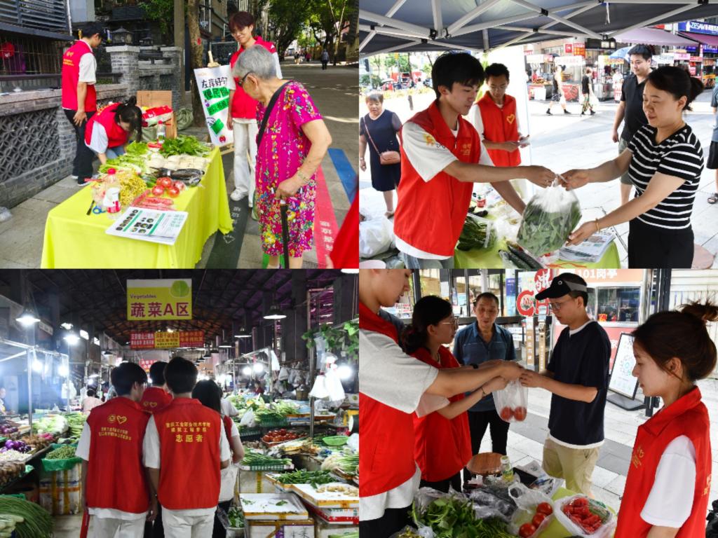环保市集与社区宣传活动同步开展,“以书换蔬”活动吸引众多居民参与,同学们仔细调研居民需求,积极宣传资源循环利用的益处,在大石坝街道等地,同学们通过定点摆摊、流动讲解,普及垃圾分类知识指导居民分类投放垃圾,让环保意识流进心间。