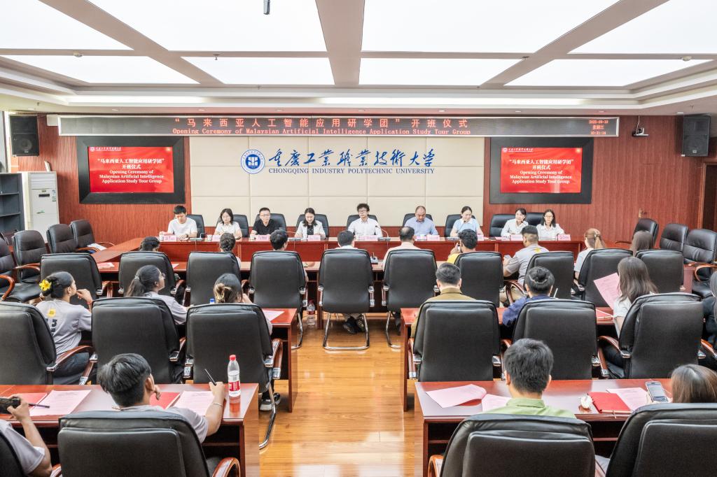 重庆市西部产教融合研究院执行院长杨国强,学校国际合作与交流处处长张科、人工智能与大数据学院院长傅田、副院长何静及马来西亚代表团师生参加开班仪式。张科介绍了学校办学历程和办学成果,以及学校依托陆海新通道职业教育国际合作联盟,成立中外合作办学机构和建立海外人才培养基地的情况。杨国强介绍了西部产教融合研究院的基本情况,研究院作为产教融合的高端智库,设立了四大专业中心,整合国内职业院校和企业资源,与多国职教机构合作。傅田介绍了人工智能与大数据学院的基本情况,她表示,学院积极探索新时代人工智能发展新模式,致力于建设国内领先的人工智能领域人才培养基地和科技创新基地。随后,马来西亚研学团学生代表Kuching和Mitra依次发言,他们对学校的精心安排表达了诚挚感谢,并期望未来能举办更多此类交流活动,进一步深化两地的友好交流。