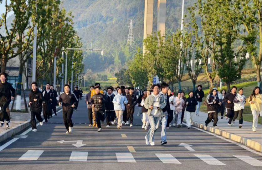 近日,通识教育学院(体育工作部)积极统筹部署,在南川校区有序组织学生开展晨跑活动,以运动赋能成长,用活力点亮校园。每日清晨7:30,同学们身着舒适的运动服饰,精神饱满、步伐矫健,主动参与到晨跑锻炼中,整齐的队列、昂扬的姿态,成为清晨校园里一道最具活力的风景线。跑步过程中,大家相互鼓励、彼此陪伴,欢声笑语回荡在校园的林荫道上,充分展现了当代大学生朝气蓬勃、积极向上的精神风貌。