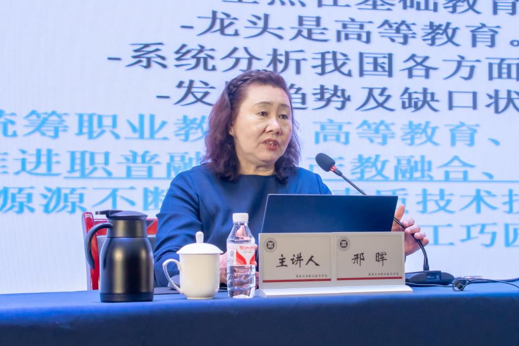为贯彻落实全国教育大会精神(以下简称“全教会”),进一步推动学校高质量发展,11月15日下午,国家教育行政学院学术委员会原主任委员、职业教育研究中心原主任邢晖教授来校作专题报告。学校党委书记郭天平主持报告会,学校科级以上干部、教研室主任以及各学院教师代表等共计4...