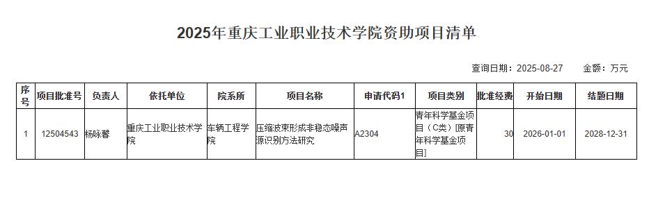 8月27日,国家自然科学基金委员会发布《关于2025年国家自然科学基金集中接收申请项目评审结果的通告》。我校车辆工程学院杨咏馨博士获得国家自然科学基金项目1项——青年科学基金(C类)。学校高度重视国家自然科学基金项目申报工作。通过加强科研团队建设,提供丰富的科研资源...